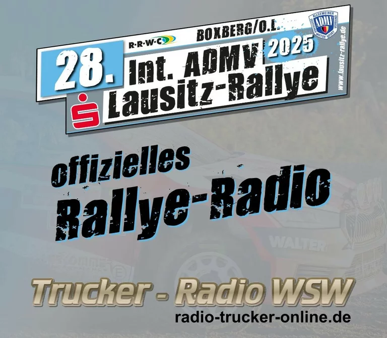 Die 28. Internationale Lausitz-Rallye in Boxberg / Oberlausitz vom 30.10. bis 01.11.2025 ist mit ihren einzigartigen Wertungsprüfungen im ehemaligen Tagebaugelände bei Teams und Fans ein Höhepunkt. Klick auf das Logo, erfahre mehr über die Lausitz-Rallye. Trucker-Radio WSW Deutschland aus dem Freistaat Sachsen ist offizielles Rallye-Radio. Wir übertragen Live am 01.11.25 ab 09:00 Uhr von der 28. Internationalen Lausitz-Rallye aus Boxberg / Nochten in der Oberlausitz...